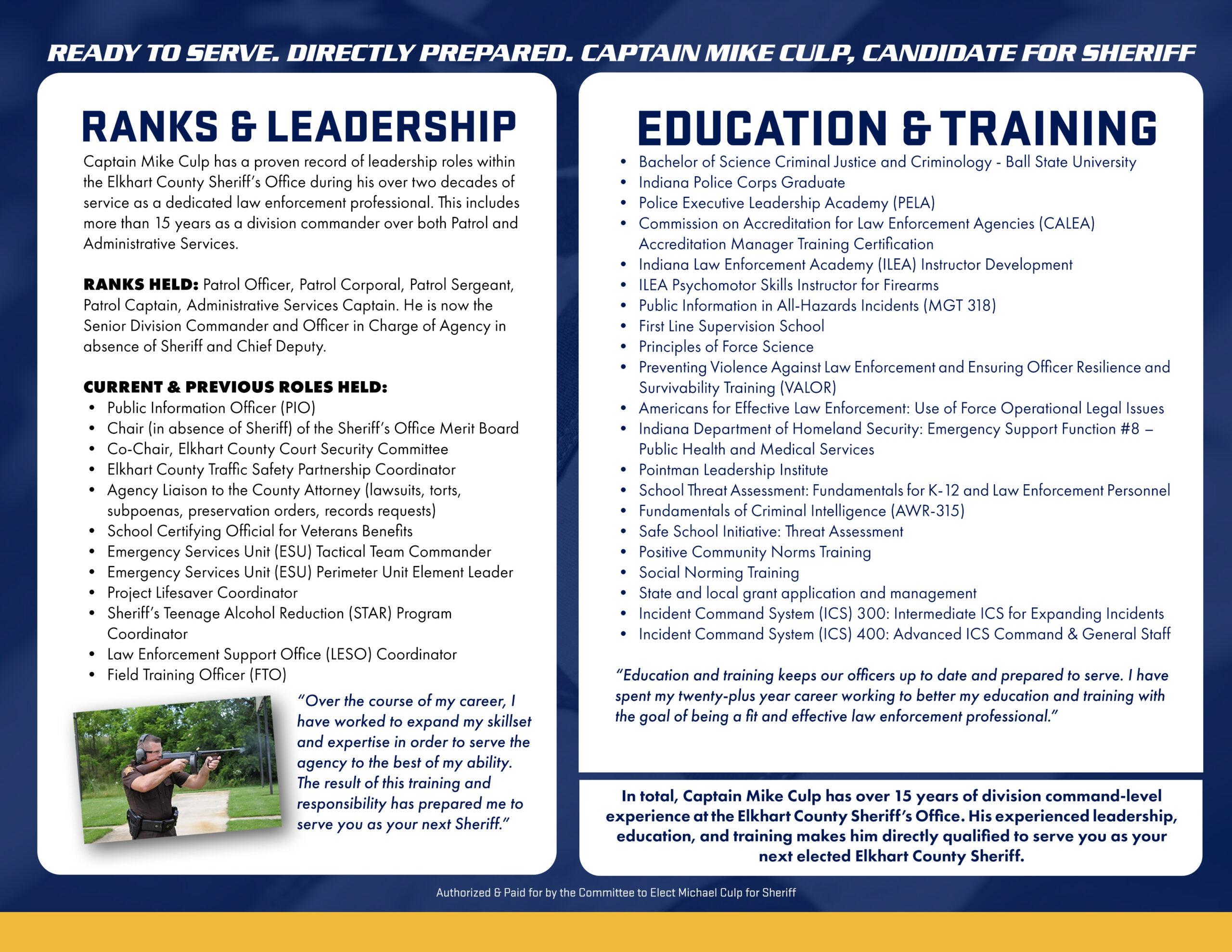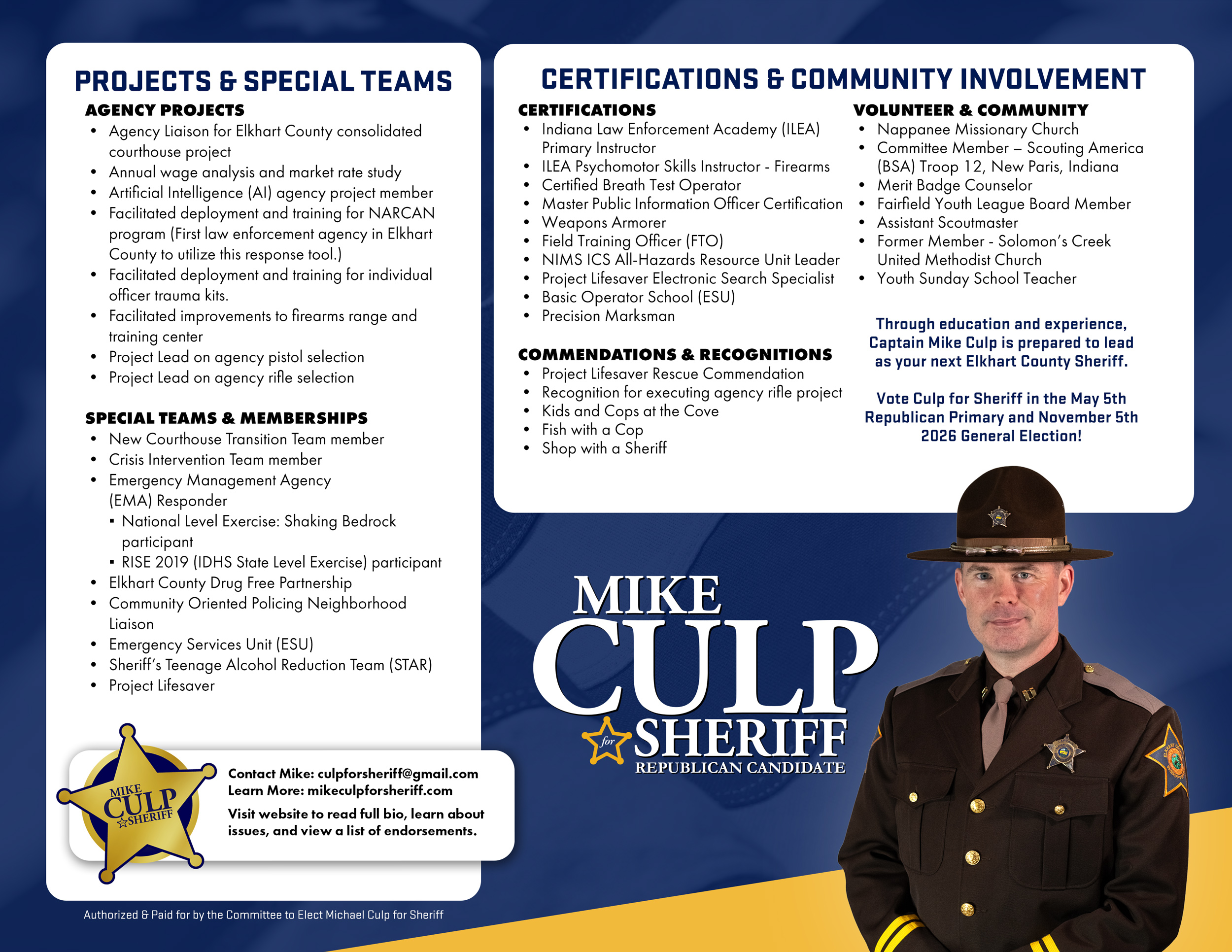 It’s Official! Mike Culp files for the office of Elkhart County Sheriff /// Culp for Sheriff FIRST TO FILE! – Bright and early this morning, my wife Angie and I went into the (new) Elkhart Read More